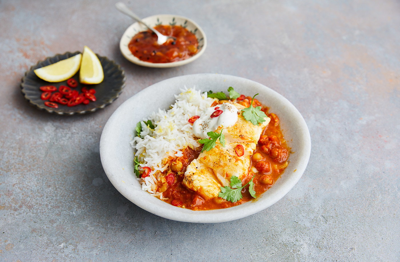 Pearly, white flaked fish simmered in a delicately spiced sauce – this is a quick and easy curry that cooks in the time it takes to boil the rice.