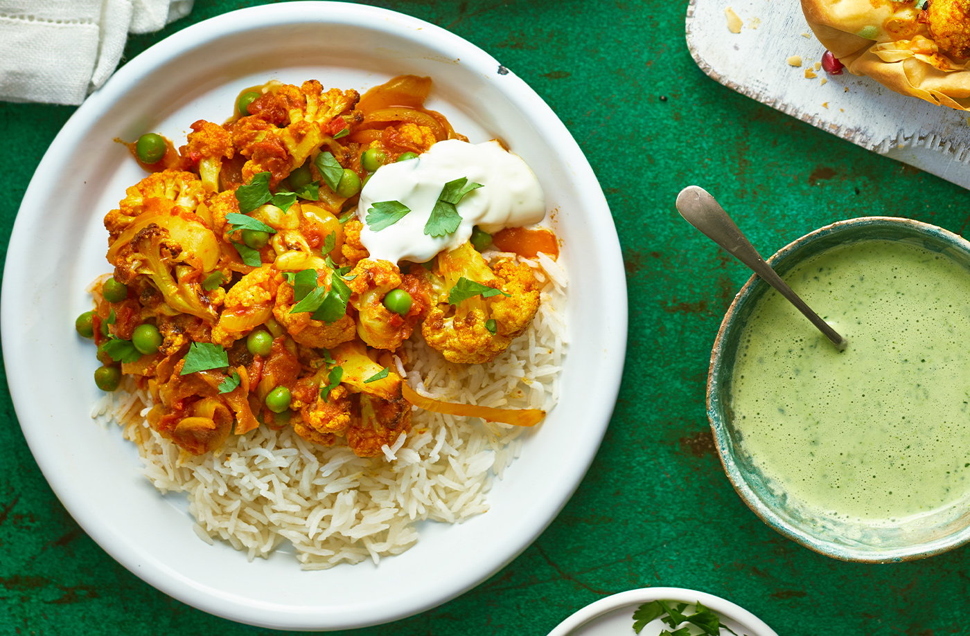 Ready in just 30 minutes, this fragrant cauliflower curry hits all the right notes for a dinner that's on the table in no time. Cook roasted cauliflower into a zingy curry sauce for a healthy, vegan-friendly meal. Make sure to reserve some of the curry for this samosa tart, a recipe that's great for lunch the next day.