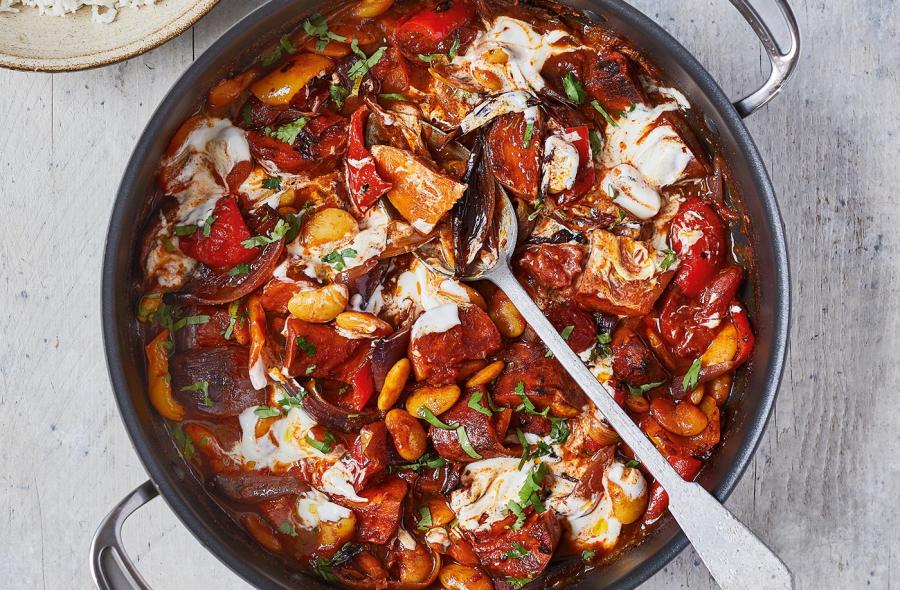 Jamie says: Tikka masala is a big-hitter and this meat-free version is packed with gnarly chunks of roasted sweet potato and peppers, plus comforting butter beans for extra creaminess. Take it to the next level with a ripple of lemon and garlic yogurt and you have yourself a brilliant family meal.